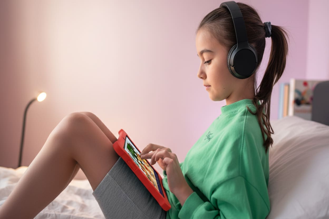 Durable hardware: Wider screen, protective case, headphones, and a flexible stand.
